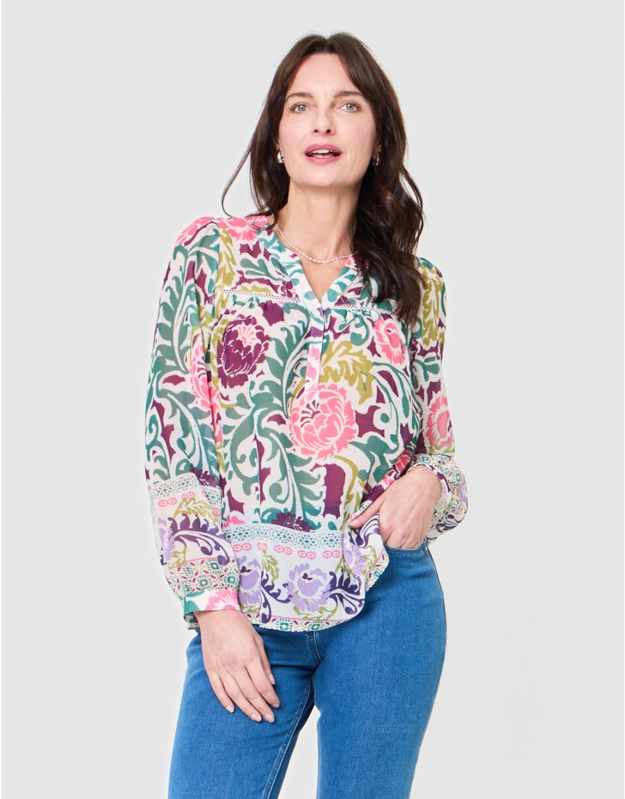 Blouse légère en voile blanc imprimée