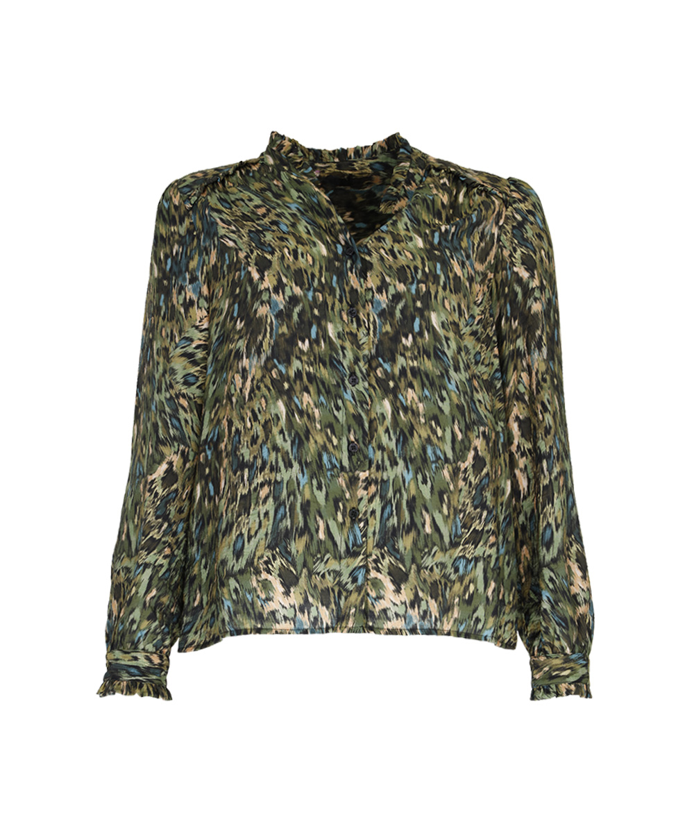 Chemisier manches longues; Matière 85 % Viscose 15 % Polyamide. Disponible de la taille 38 au 48.