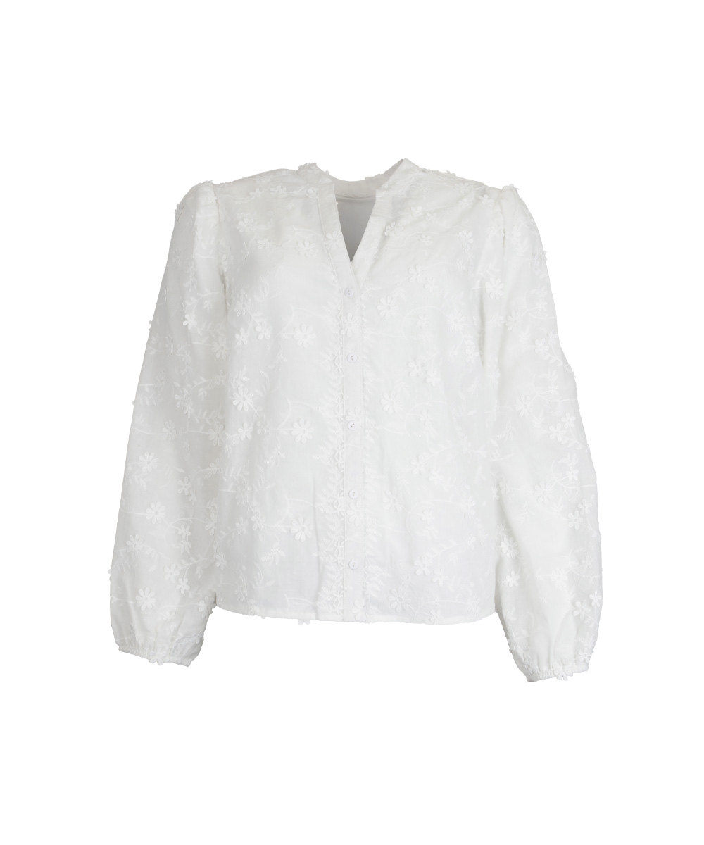 / Chemisier Coton Brodée Fleurs Ressa Julie GuerlandeBlanc
