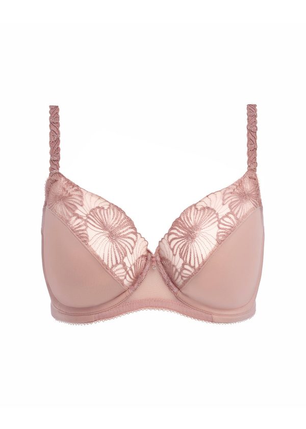Décolleté orné d’une broderie florale audacieuse et festonnée sur un fond de tulle extensible pour un confort et une application exceptionnels